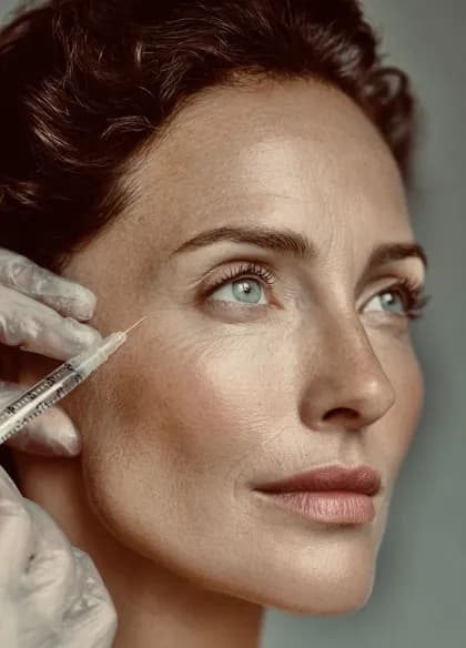 Gezielte Behandlung mimischer Falten (z.B. Zornesfalte, Krähenfüße) für einen entspannten und geglätteten Gesichtsausdruck.